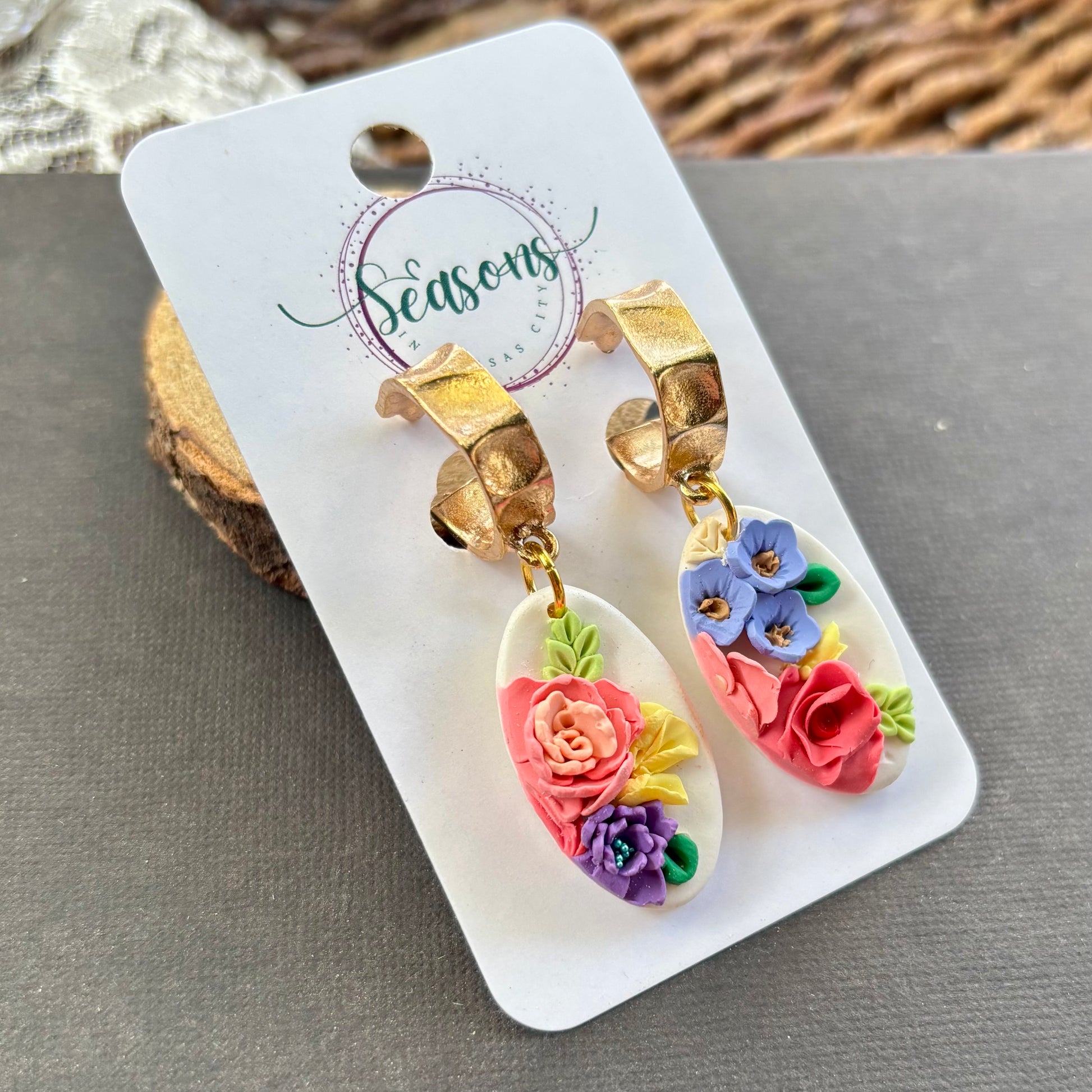 The Carly is a floral slab collection, meaning every piece is unique. An oatmeal background is topped with an array of colors from the House of Colour spring palette including leaf green, coral, violet, hyacinth, mint green, tangerine, geranium pink, flamingo pink, honey, aquamarine, and more.