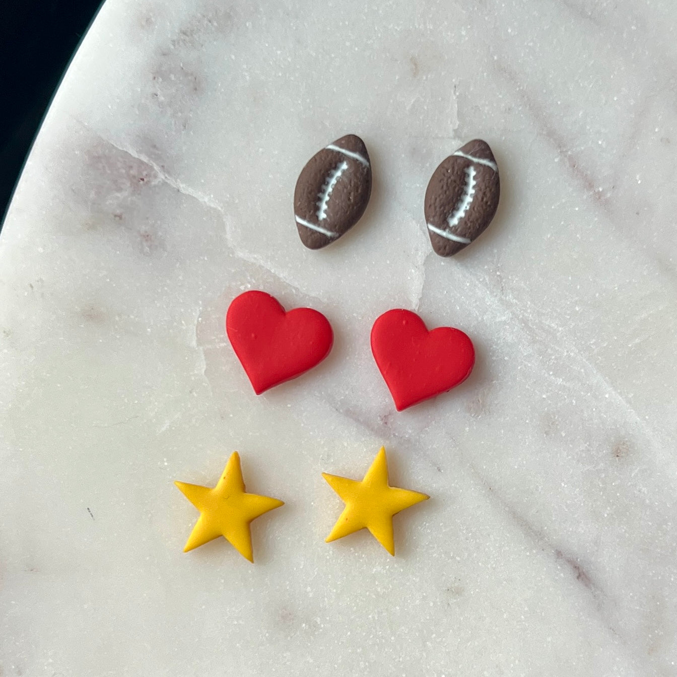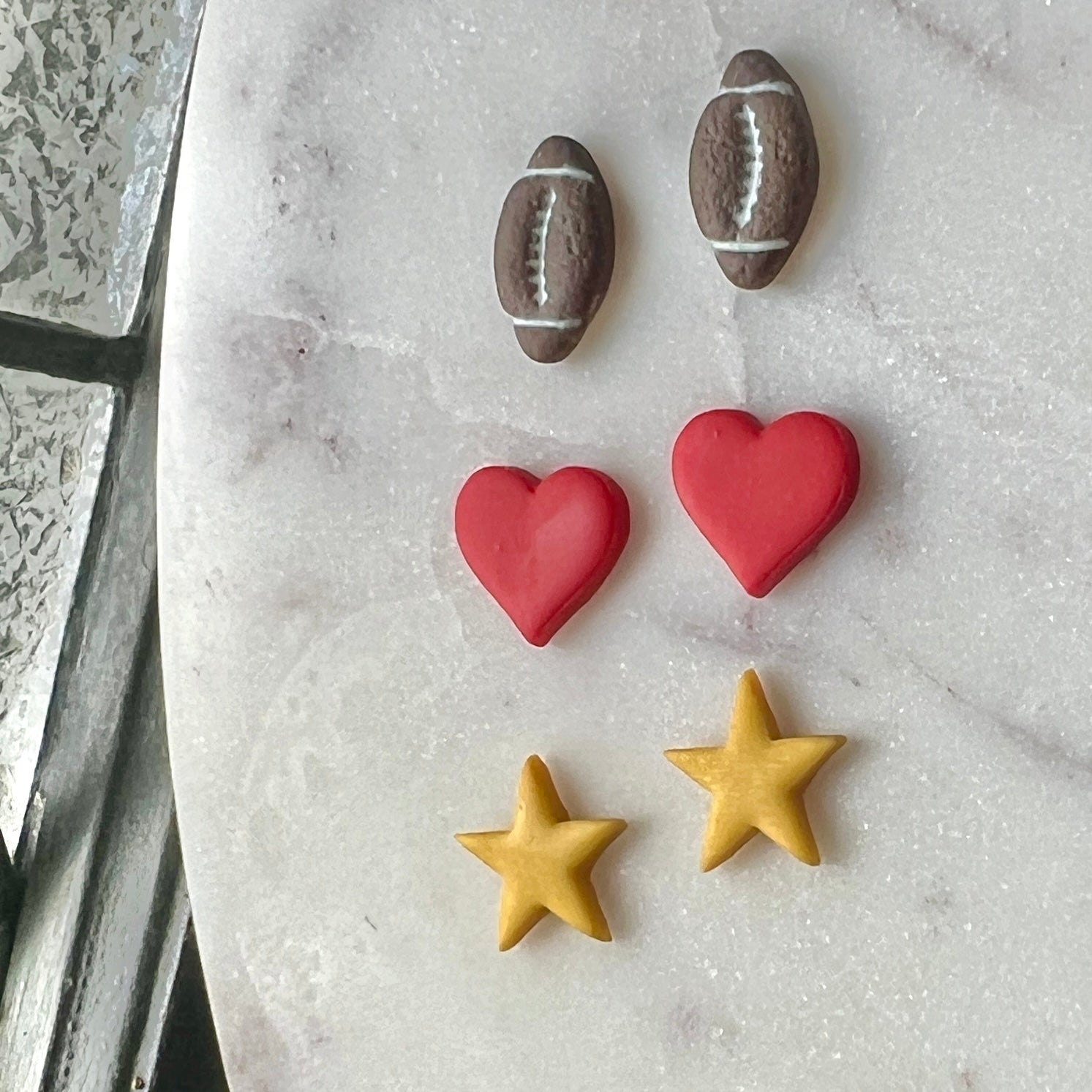 Red hearts and yellow stars are finished with a football to create the perfect game day accessory pack.