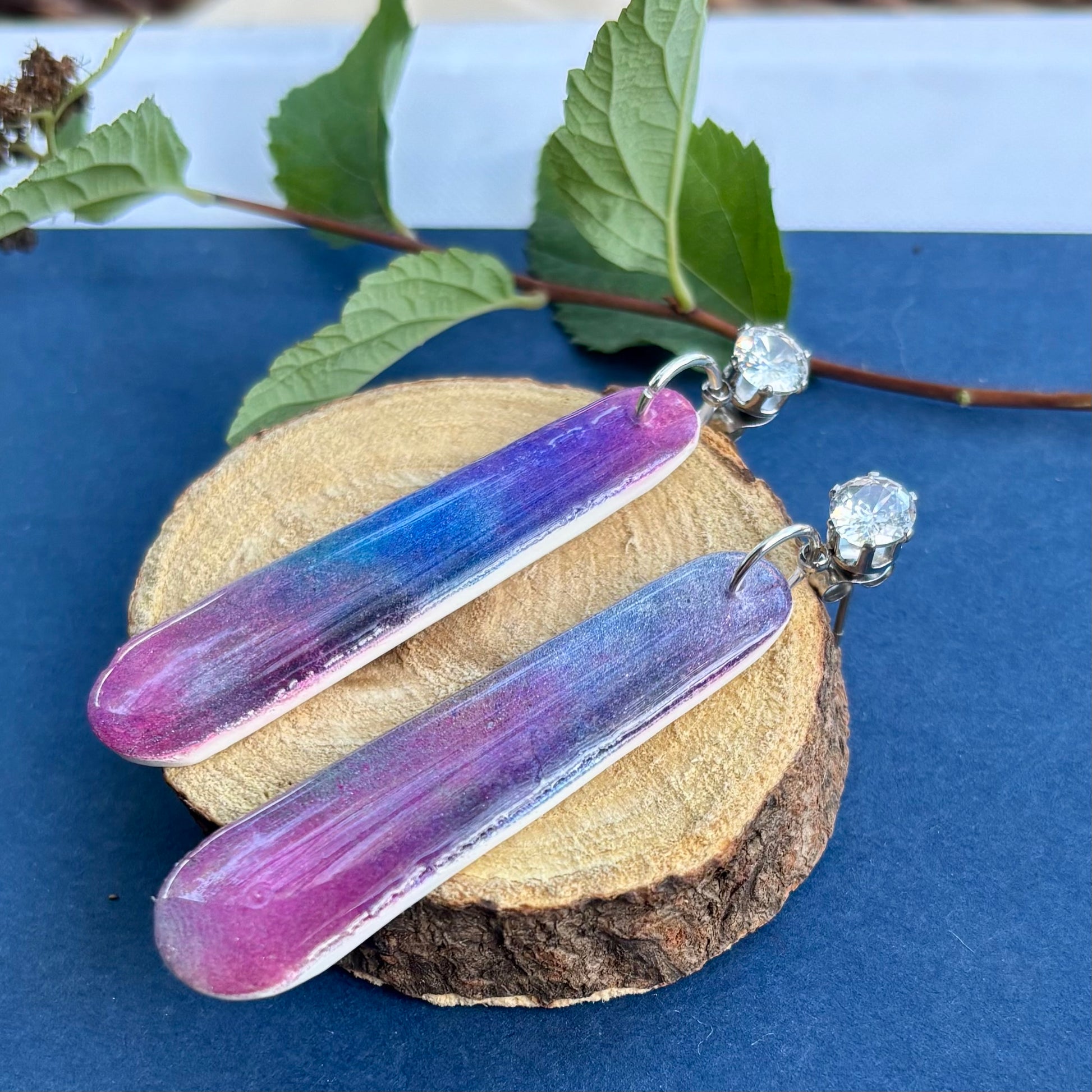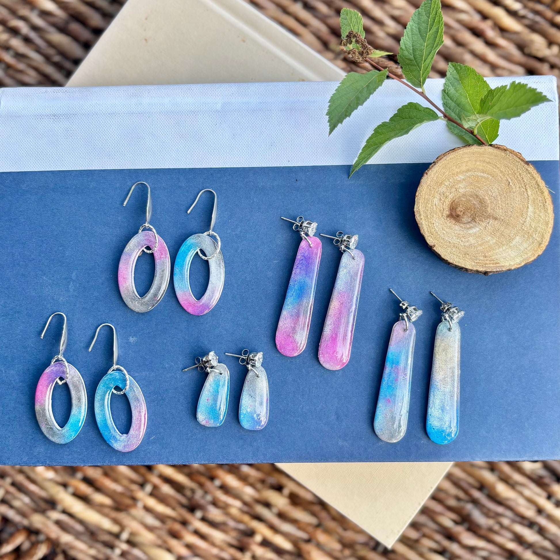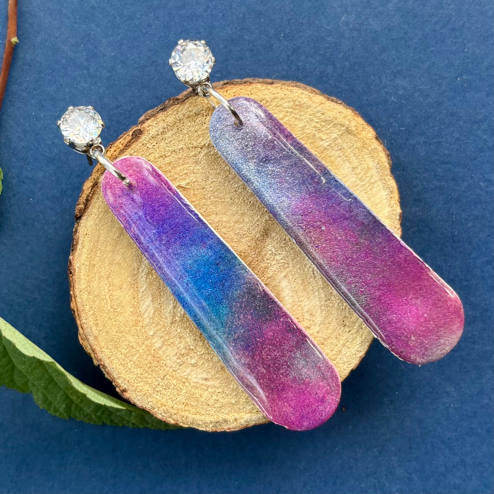 Luna is a collection of shimmery powder in mole, fuchsia, royal blue, royal purple, and silver topped with UV resin for added shine and dimension.
