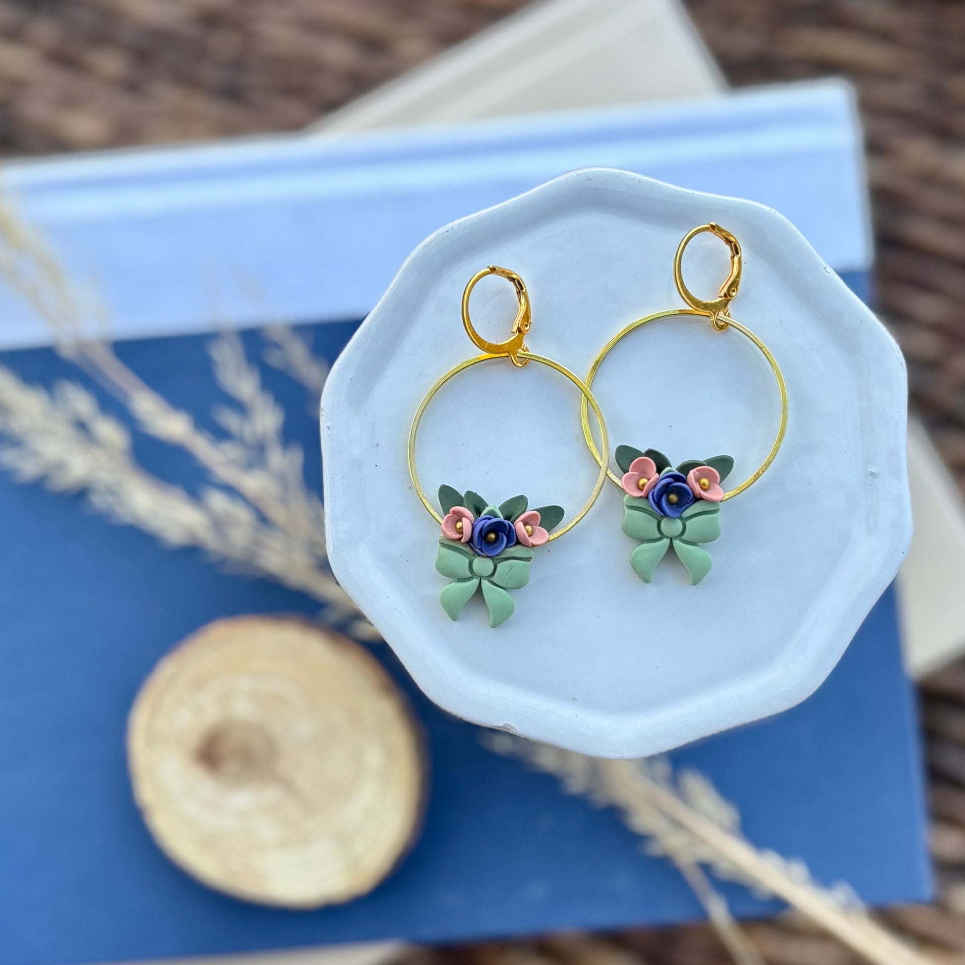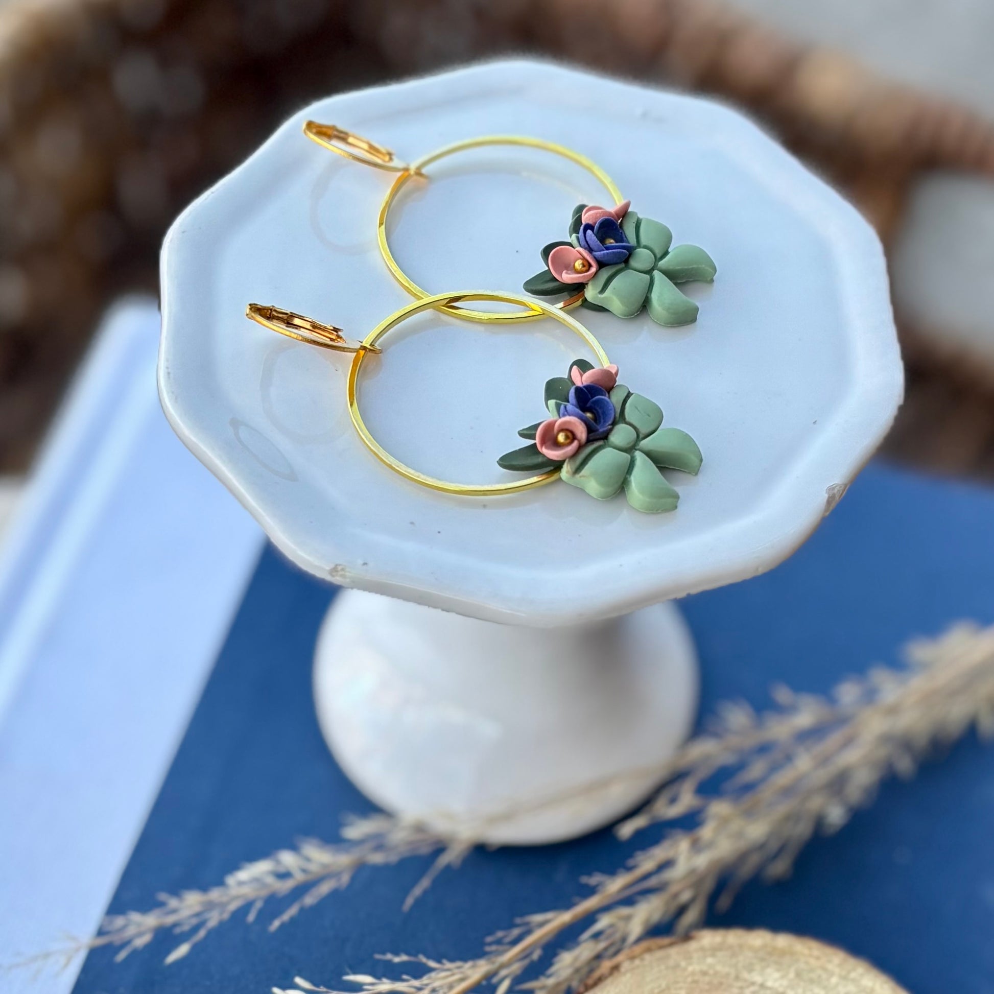 Lyla is a collection of softened dark olive topped with heliotrope, rosewood, and apple jade clay with gilded gold detailing.