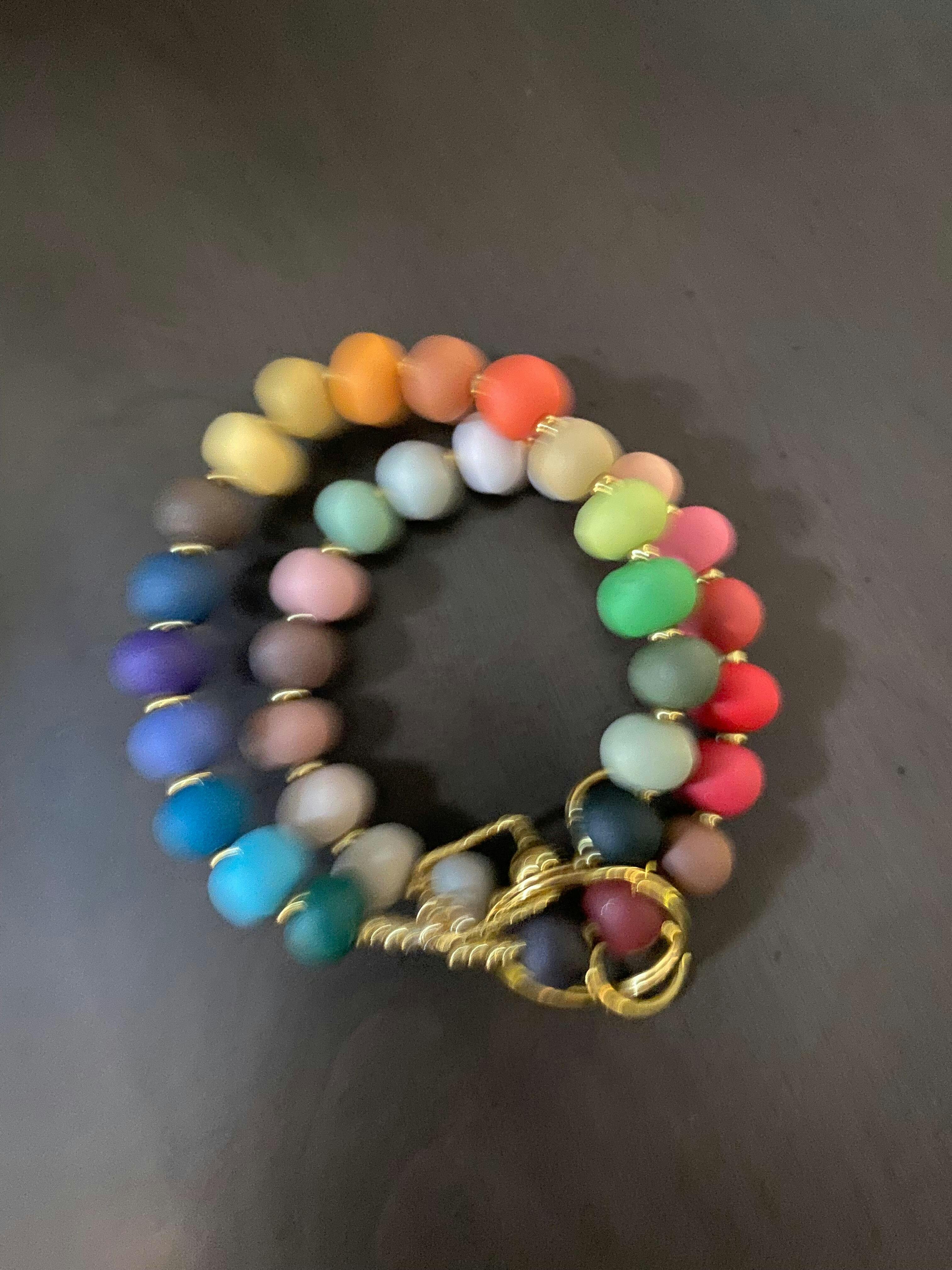 Palette Wearable necklaces include a bead in a custom, hand mixed color to match each of the 36 House of Colour colors from the autumn palette. Each bead is hand rolled and finished after being color matched.