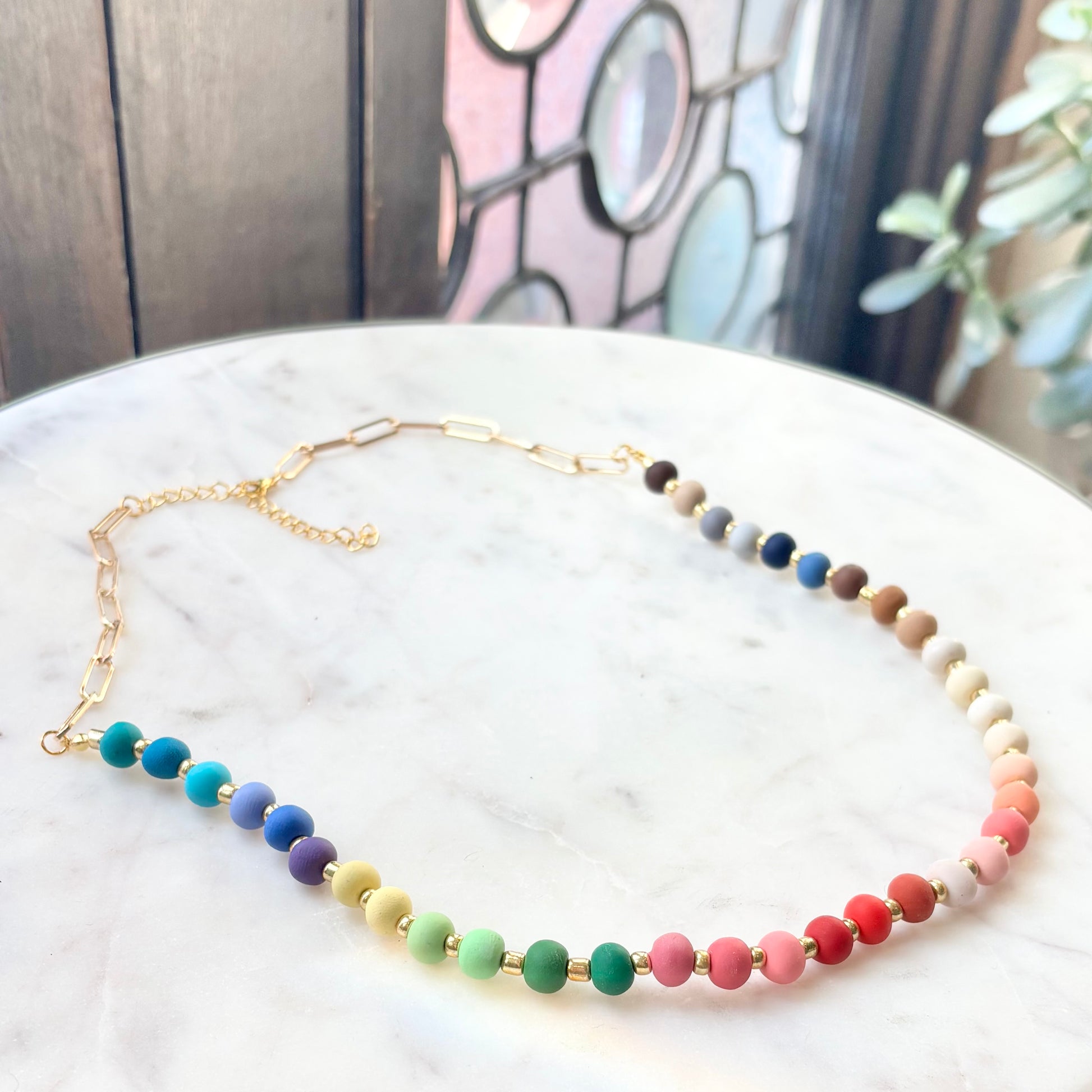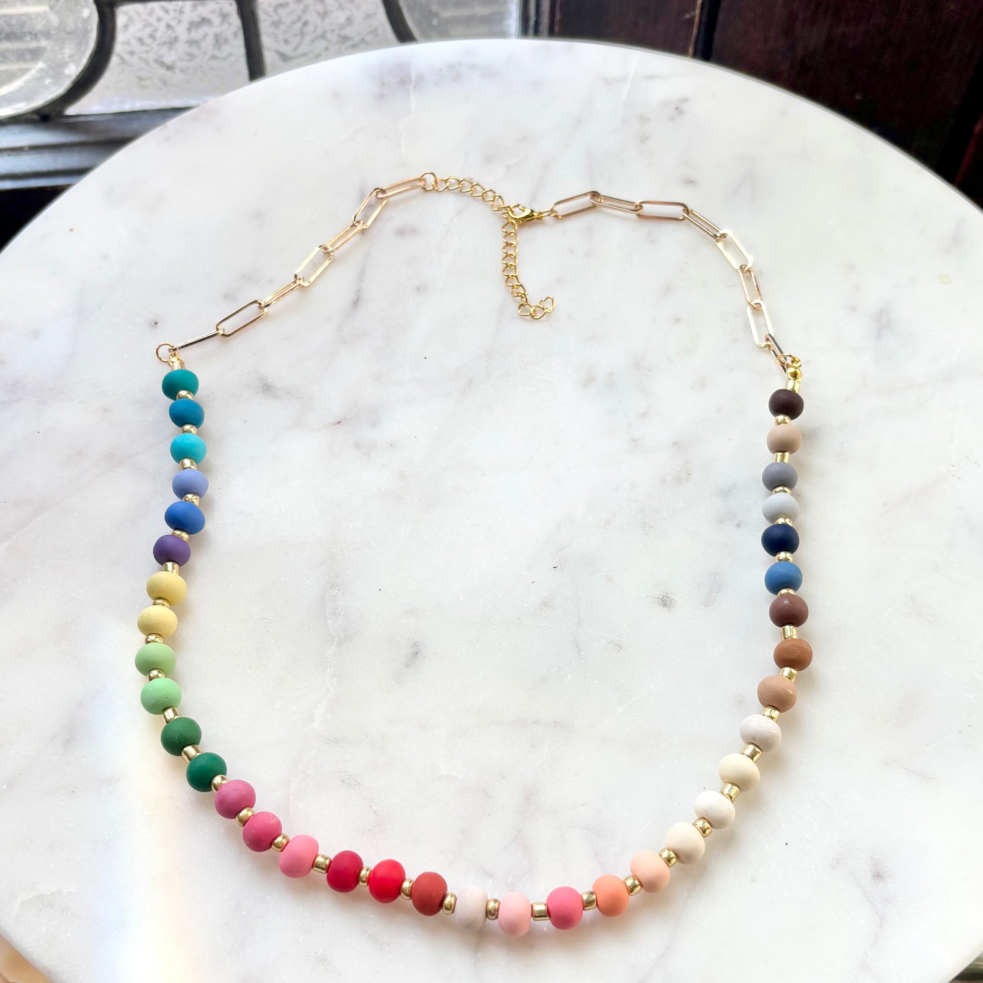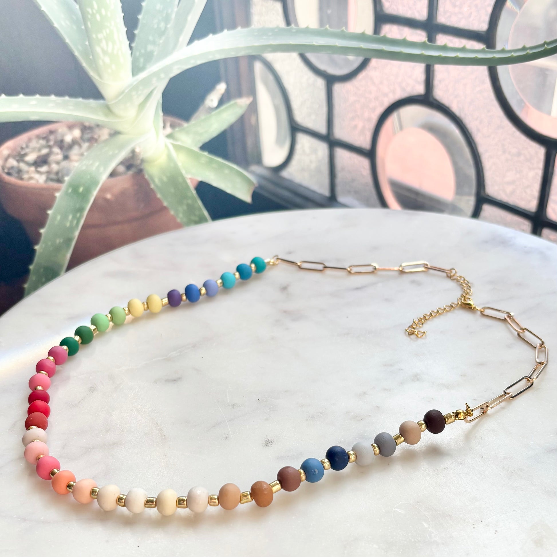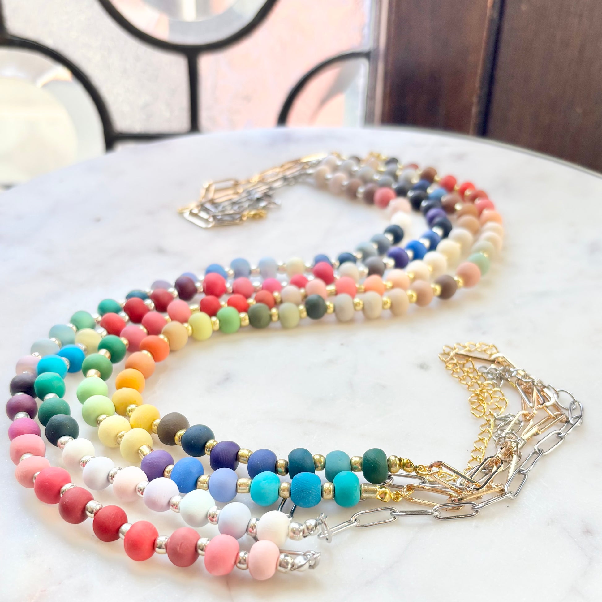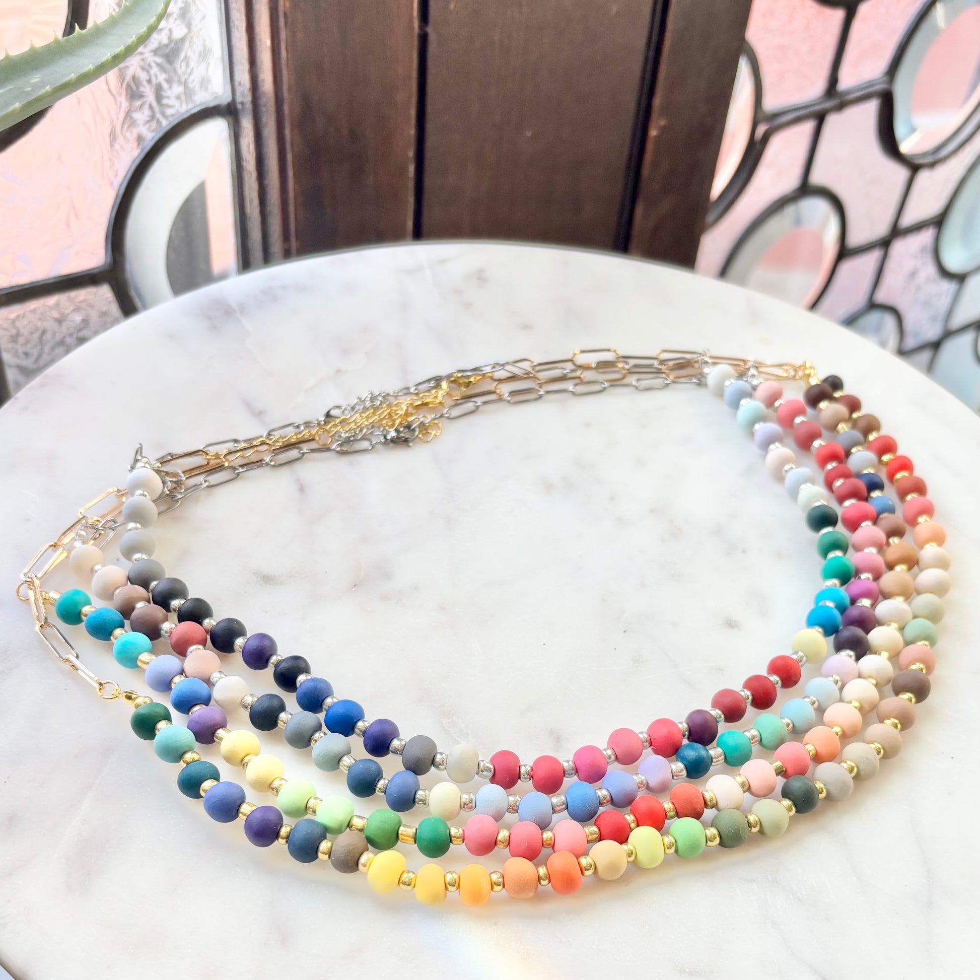 Palette Wearable necklaces include a bead in a custom, hand mixed color to match each of the 36 House of Colour colors from the spring palette. Each bead is hand rolled and finished after being color matched.