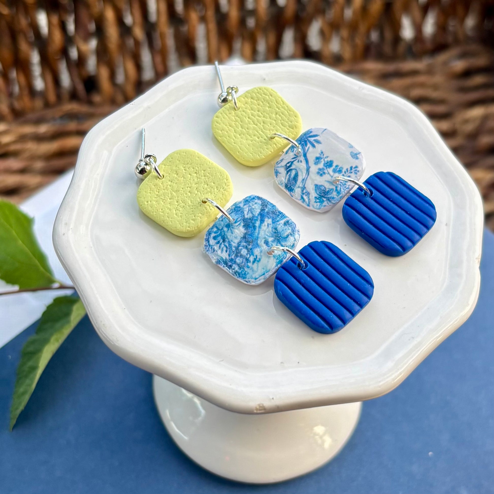 The Phoebe collection features and electric blue print, accented with electric blue and acid yellow.