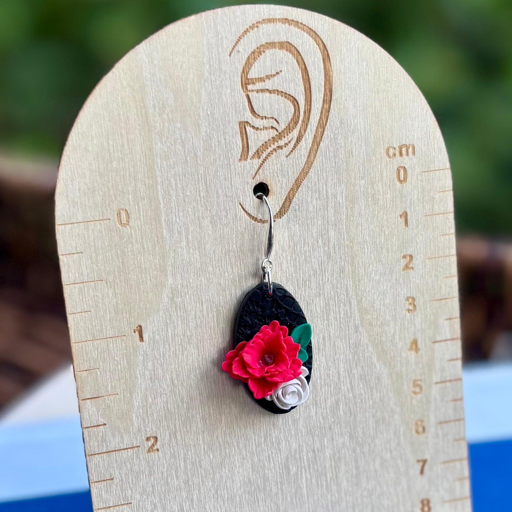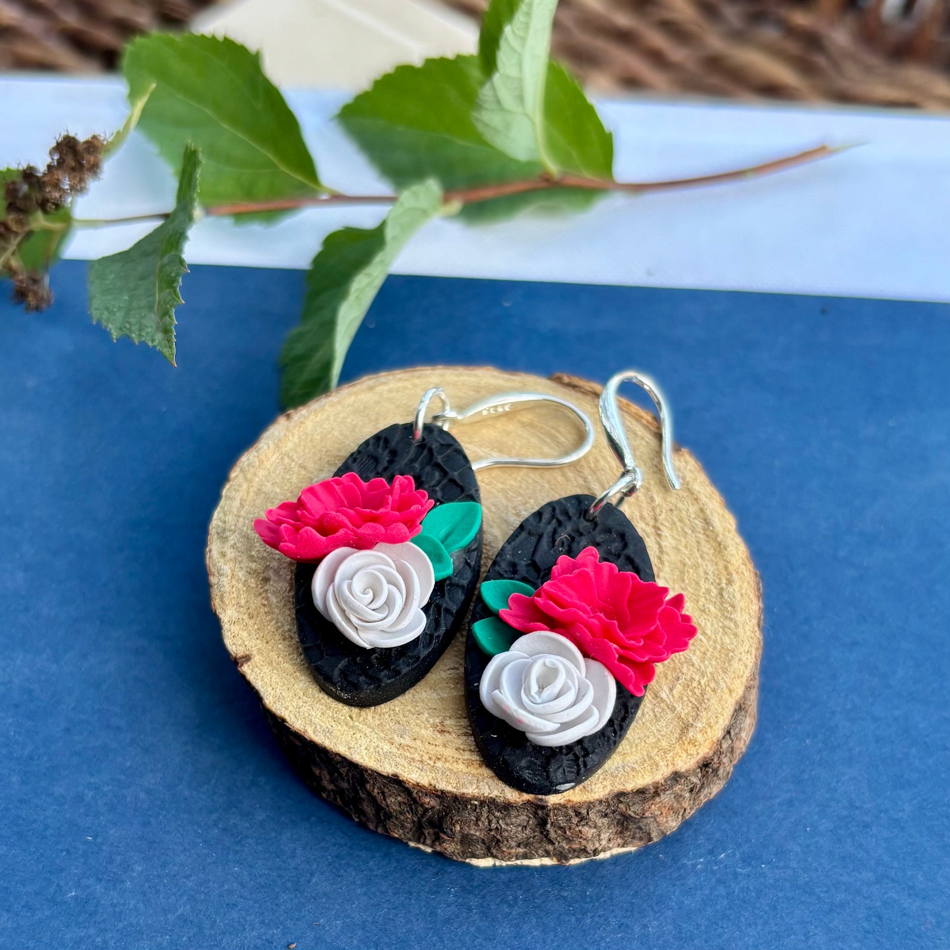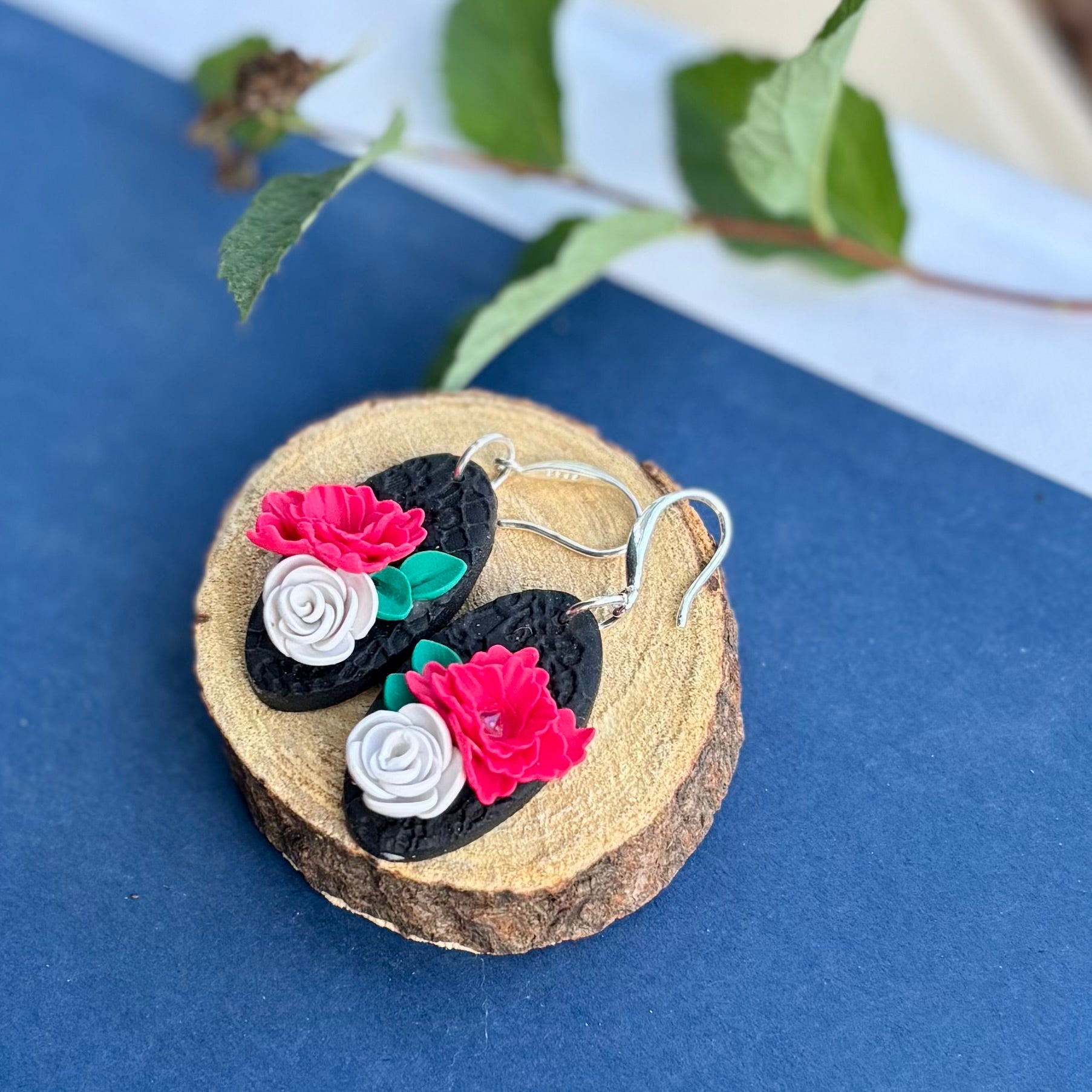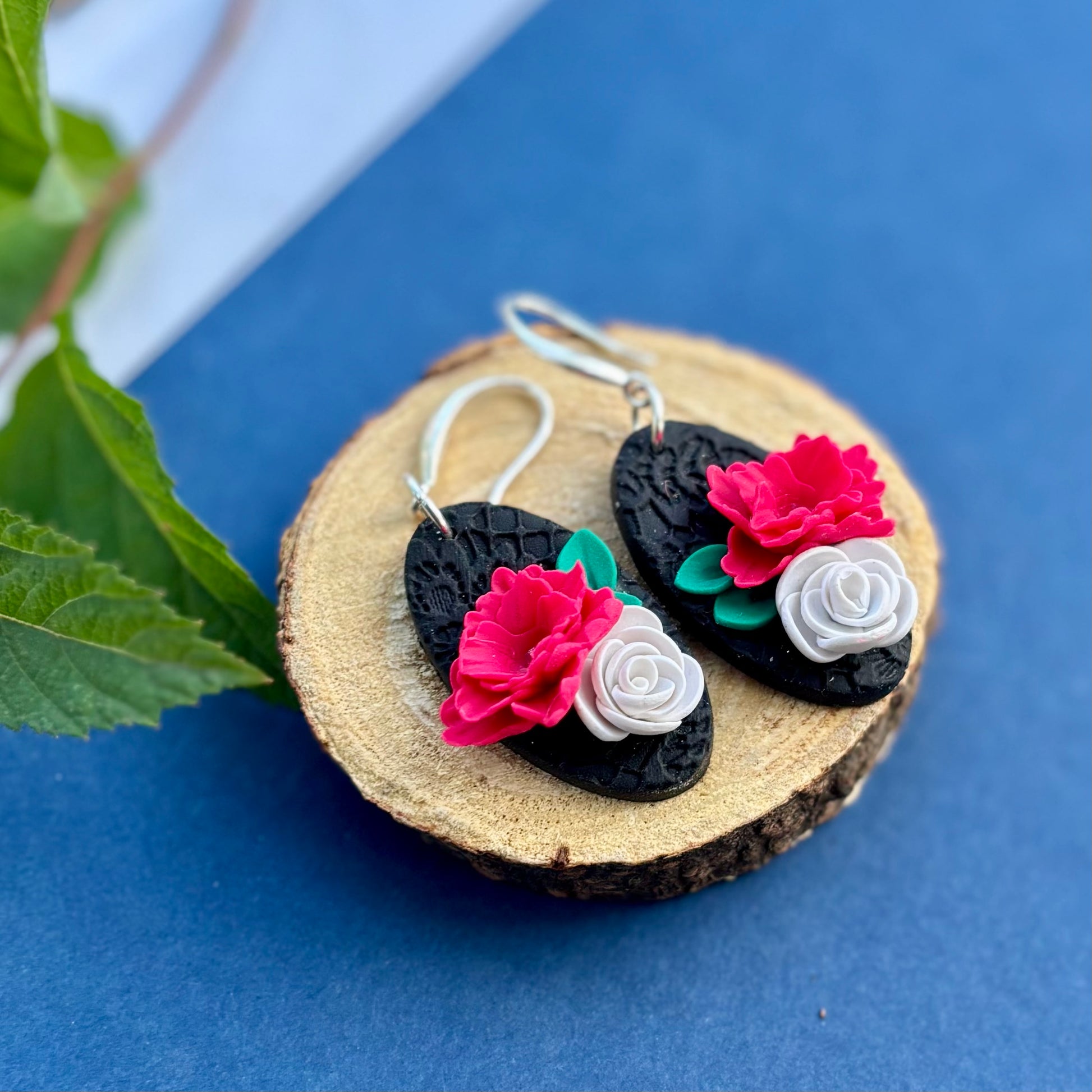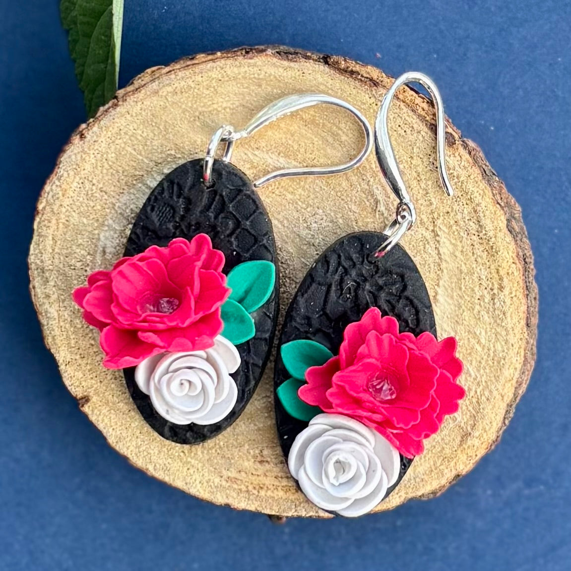 The floral Taylor is a black background with white, light emerald, and fuchsia florals.