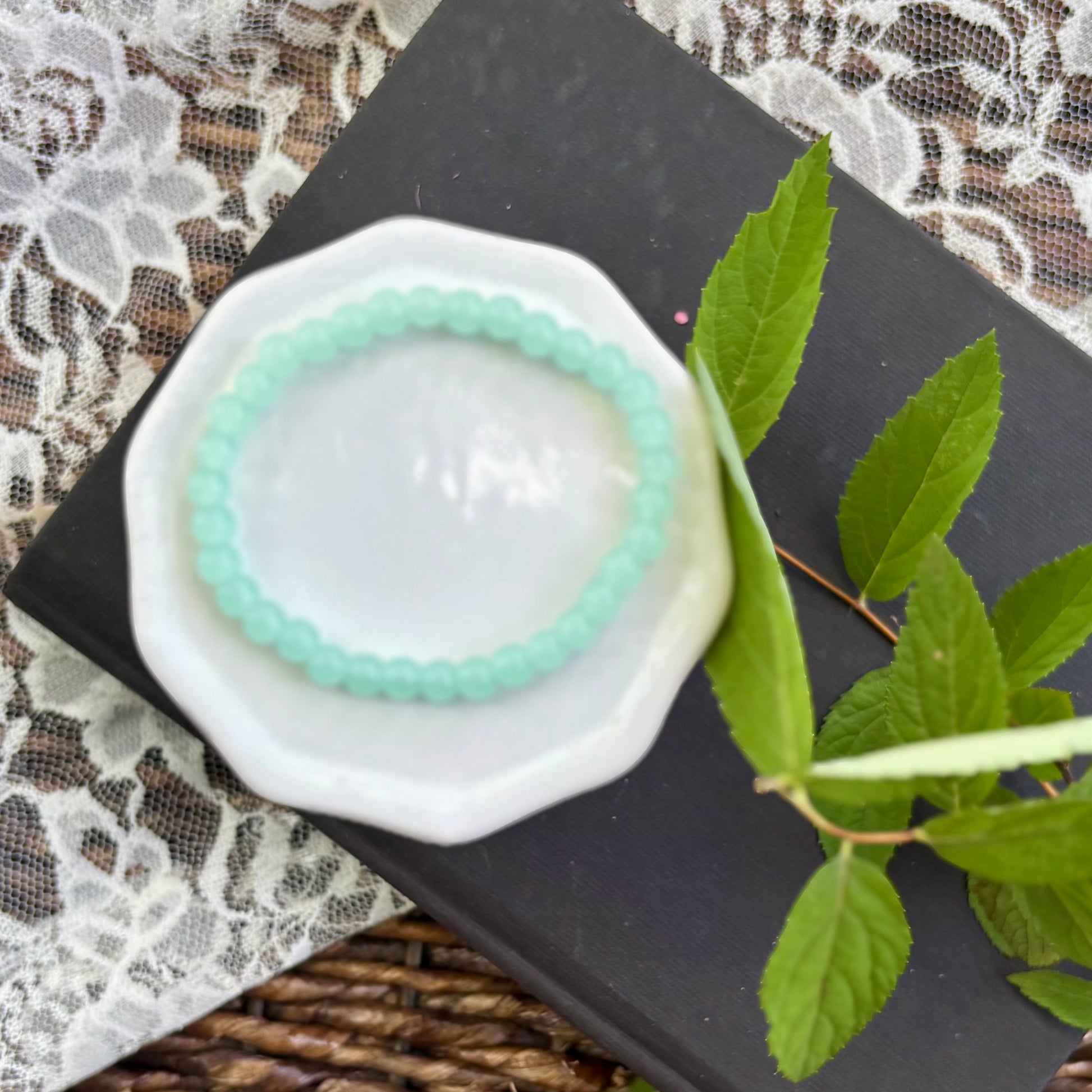 Zoe is a collection of acrylic beaded bracelets made of both 6 and 8 mm beads. They are approximately 7” around and strung on stretchy cord.